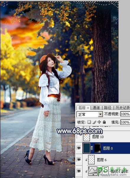 18、创建纯色调整图层,颜色设置为暗蓝色:#0C3148,确定后把蒙版填充黑色,然后用透明度较低柔边白色画笔把顶部及底部需要变暗的区域涂暗,效果如下图。