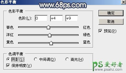6、创建色彩平衡调整图层,对阴影,高光进行调整,参数设置如图12,13,确定后创建剪切蒙版,效果如图14。这一步给暗部增加蓝色。