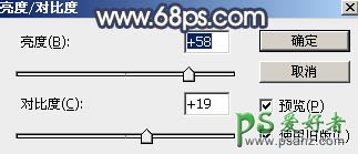 8、创建亮度/对比度调整图层,大幅增加亮度及对比度,参数设置如图17,确定后创建剪切蒙版;再把蒙版填充黑色,用透明度较低柔边白色画笔把图18所示的区域擦出来。这一步增加暗部局部亮度。