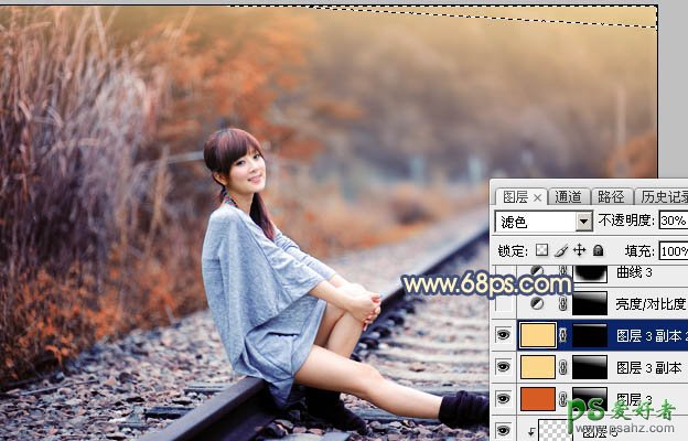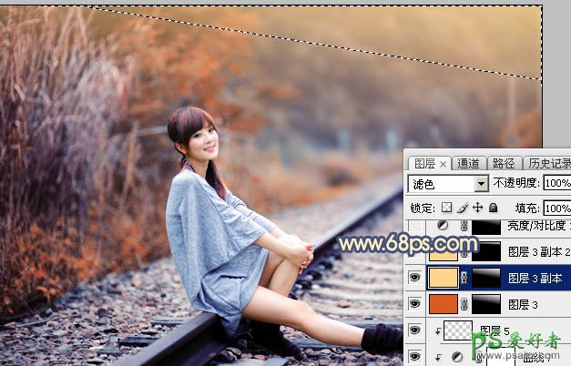 16、按Ctrl + J 把当前纯色调整图层复制一层,把颜色设置为橙黄色:#FCD68B,确定后把混合模式改为“滤色”,效果如下图。
