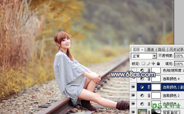 Photoshop给外景自拍的性感女性生活照调出夕阳下唯美意境的...