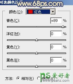 5、创建可选颜色调整图层,对红,黄进行调整,参数及效果如下图。这一步给图片增加橙红色。