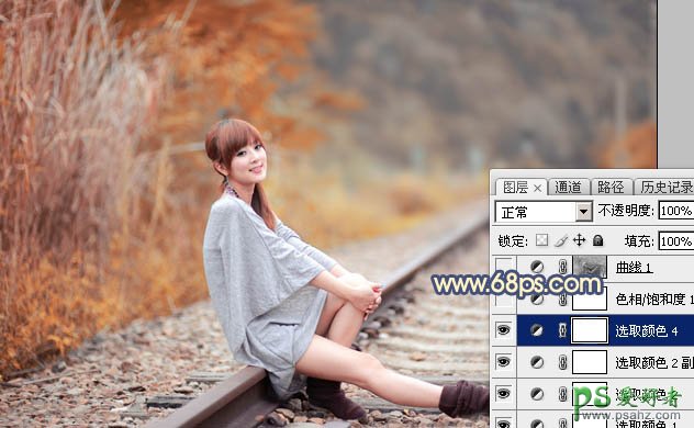 PS调色教程:学习给外景自拍的优雅女生性感照片调出甜美的橙蓝色