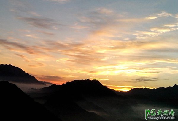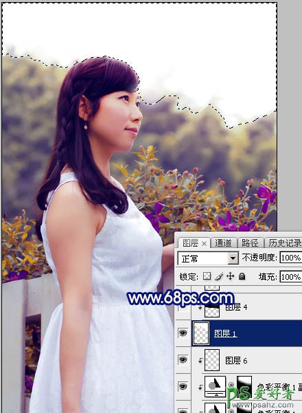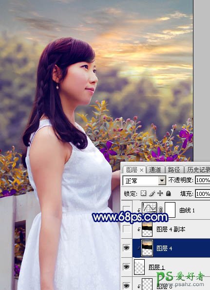 14、保存天空素材大图到本机,用PS打开,用移动工具拖进来,创建剪切蒙版后效果如下图。