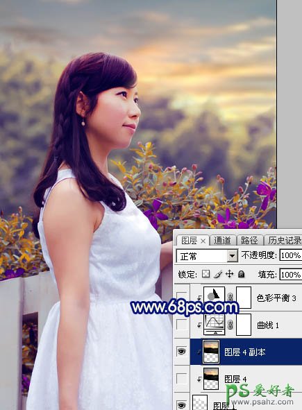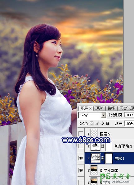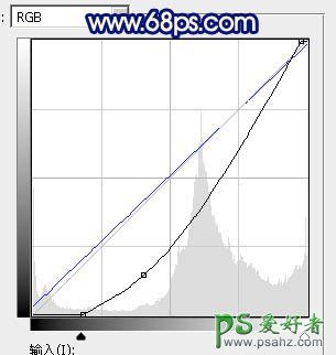 16、创建曲线调整图层,对RGB,蓝通道进行调整,参数设置如图39,确定后创建剪切蒙版,效果如图40。这一步把天空部分调暗一点,并增加蓝色。