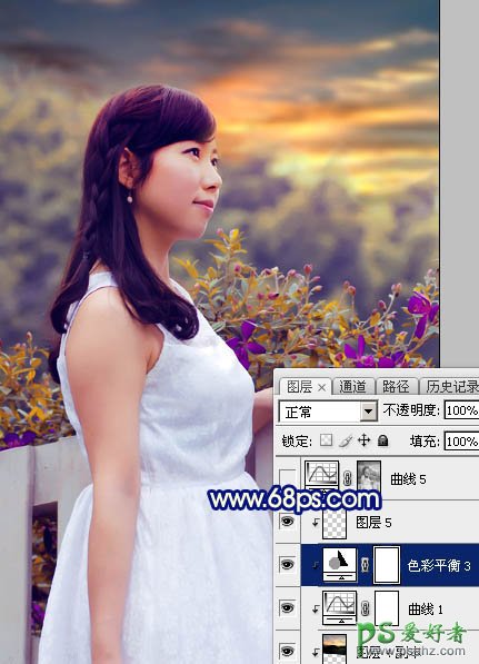 Photoshop给篱芭边自拍的性感美人生活照调出唯美漂亮的朝霞色彩