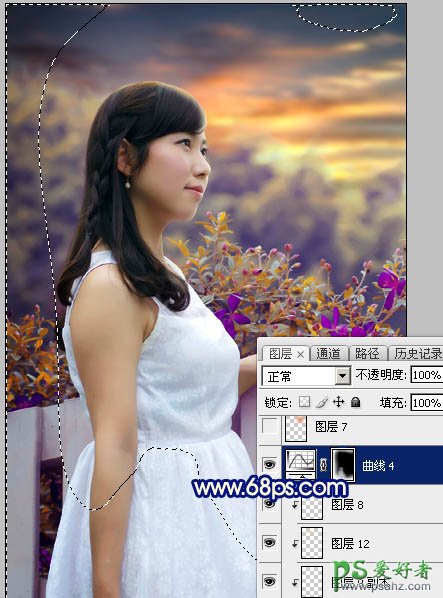 Photoshop给篱芭边自拍的性感美人生活照调出唯美漂亮的朝霞色彩