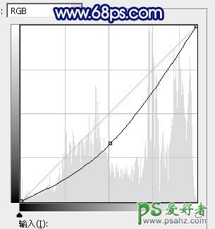 21、创建曲线调整图层,对RGB通道进行调整,参数设置如图51,确定后把蒙版填充黑色,然后用透明度较低的柔边白色画笔把需要变暗的部分擦出来,如图52。这一步给图片增加暗角。