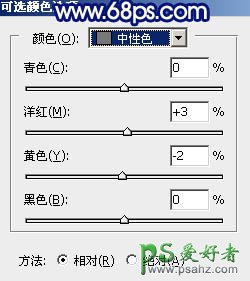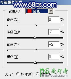 3、创建可选颜色调整图层,对红、黄、中性色进行调整,参数设置如图7 - 9,效果如图10。这一步微调暖色及中间调颜色。