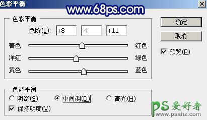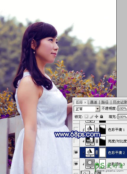 7、创建色彩平衡调整图层,对中间调,高光进行调整,参数设置如图26,27,确定后创建剪切蒙版,效果如图28。这一步给图片暗部增加蓝色。