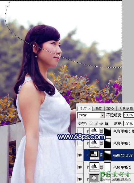 8、用套索工具勾出图30所示的选区,羽化45个像素后创建亮度/对比度调整图层,增加亮度及对比度,参数设置如图29,确定后创建剪切蒙版,效果如图30。这一步把高光区域调亮一点。