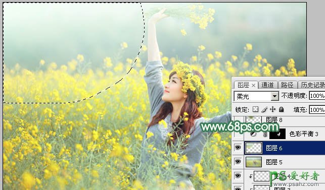 15、用套索工具勾出下图所示的选区,羽化50个像素后按Ctrl + J 复制到新的图层,不透明度改为:100%,效果如下图。