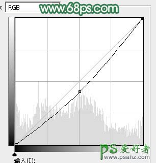 19、创建曲线调整图层,对RGB通道进行调整,参数设置如图44,确定后把蒙版填充黑色,然后用透明度较低柔边白色画笔把人物背光区域涂暗一点,效果如图45。