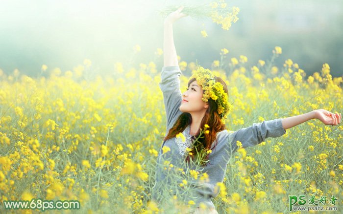 Photoshop给油菜花地里自拍的漂亮女生艺术照调出黄色甜美的色彩,又到了油菜花盛开的季节,拍摄一组乡野风格的美女写真图片,非常唯美梦幻有意境。本篇实例中教大家如何后期美化处理,打造出唯美、清爽、甜美、逆光等效果。