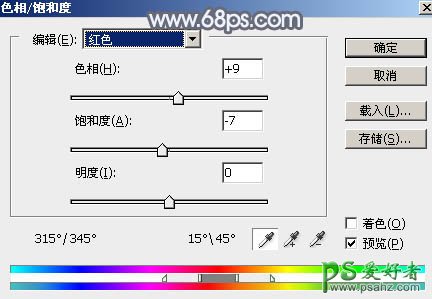 4、创建色相/饱和度调整图层,对红、黄、绿、青进行调整,参数设置如图9 - 12,效果如图13。这一步降低暖色饱和度,并把青绿色转为中性色。