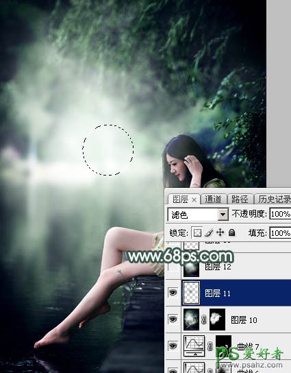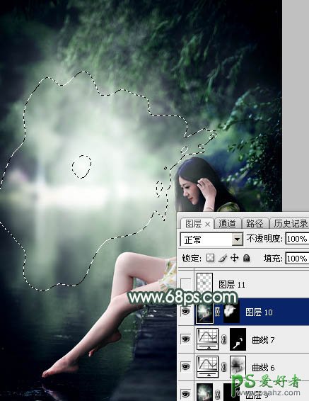 Phootshop给春季外景自拍的长腿玉足唯美女生照片调出古典暗绿色
