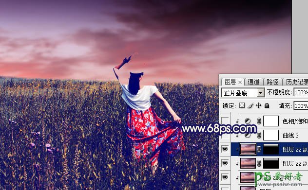 13、按Ctrl + J 把当前图层复制一层,创建剪切蒙版后效果如下图。这两步把天空顶部区域压暗。