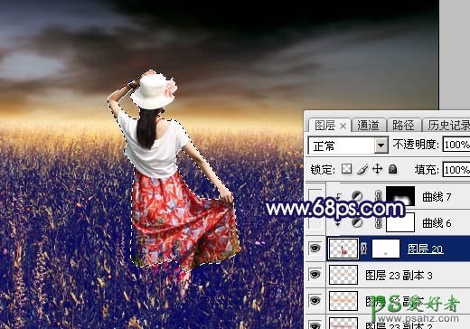 21、把背景图层复制一层,按Ctrl + Shift + ] 置顶,用钢笔工具把人物部分抠出来,转为选区后添加图层蒙版,再用黑色画笔把底部过渡涂抹自然,效果如下图。