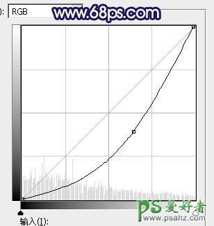 23、创建曲线调整图层,把RGB通道压暗一点,参数设置如图45,确定后把蒙版填充黑色,然后用柔边白色画笔把人物底部区域涂暗,效果如图46。