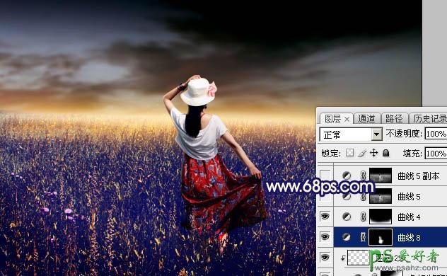 Phootshop给春季外景自拍的长腿玉足唯美女生照片调出古典暗...