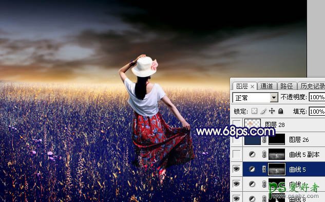 27、按Ctrl + Alt + 2 调出高光选区,创建曲线调整图层,对RGB、红、绿、蓝通道进行调整,参数设置如图50 - 53,效果如图54。这一步给图片高光区域增加淡蓝色。