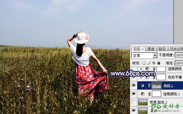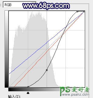 2、按Ctrl + Alt + 2 调出高光选区,按Ctrl + Shift + I 反选,然后创建曲线调整图层,对RGB、红、蓝通道进行调整,参数及效果如下图。这一步大幅压暗图片的暗部区域,并减少红色,增加蓝色。