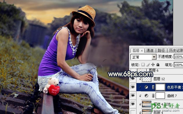 PS女生照片调色教程:给唯美女生外拍写真照片调出暖暖的蓝褐...