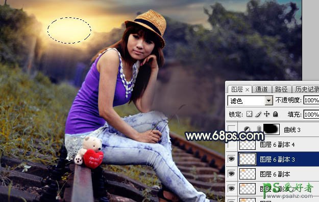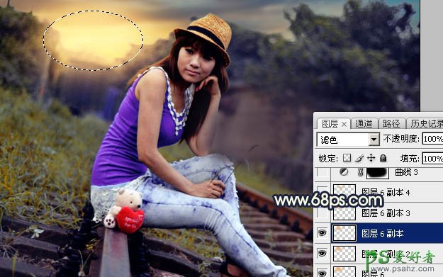 16、按Ctrl + J 把当前图层复制一层,按Ctrl + T 稍微缩小一点,混合模式改为“滤色”,效果如下图。