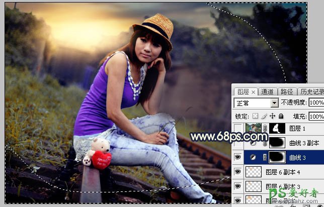 19、创建曲线调整图层,对RGB通道进行调整,参数设置如图36,确定后把蒙版填充黑色,然后用柔边白色画笔把右侧及底部区域涂暗一点,效果如图37。这一步给图片局部增加暗角。