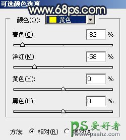 2、创建可选颜色调整图层,对黄,白进行调整,参数及效果如下图。这一步把图片中的暖色调暗一点,高光区域增加淡青色。