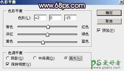 17、创建色彩平衡调整图层,对高光进行调整,参数设置如图40,确定后创建剪切蒙版,效果如图41。这一步给人物部分增加暖色。