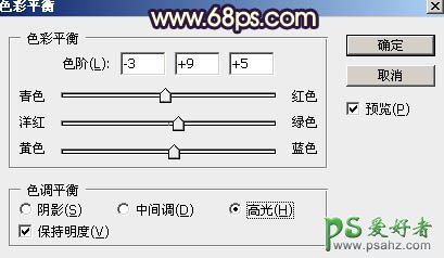 24、创建色彩平衡调整图层,对阴影,高光进行调整,参数及效果如下图。这一步给图片增加青蓝色。
