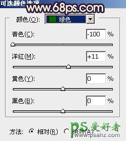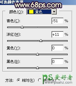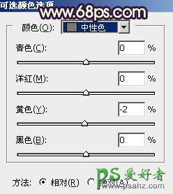 3、创建可选颜色调整图层,对黄、绿、青、中性色进行调整,参数设置如图4 - 7,效果如图8。这一步主要把图片中的黄绿色转为橙黄色。