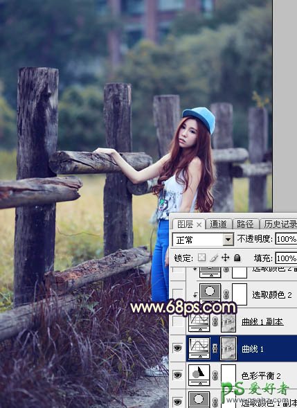 6、按Ctrl + Alt + 2 调出高光选区,按Ctrl + Shift + I 反选得到暗部选区,然后创建曲线调整图层,对RGB、绿、蓝通道进行调整,参数设置如图12 - 14,效果如图15。这一步增加图片暗部明暗对比,并增加暗蓝色。