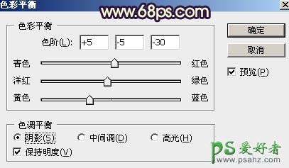 10、创建色彩平衡调整图层,对阴影,高光进行调整,参数设置如图22,23,确定后创建剪切蒙版,效果如图24。这一步给暗部增加暖色。