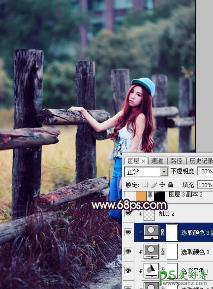 12、按Ctrl + J 把当前可选颜色调整图层复制一层,创建剪切蒙版后效果如下图。