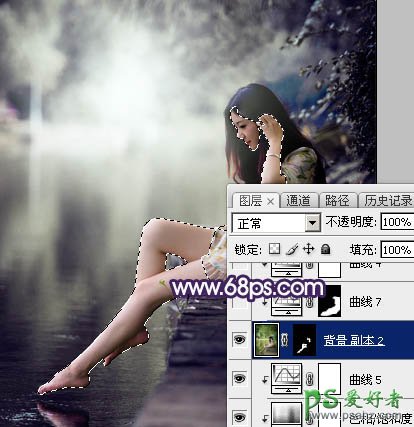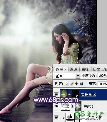 12、把背景图层复制一层,按Ctrl + Shift + ] 置顶,用钢笔工具把人物衣服部分抠出来,转为选区后添加图层蒙版,如下图。