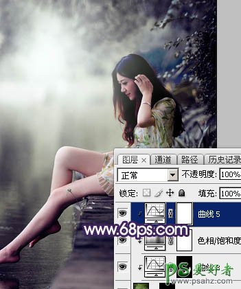 13、微调一下衣服颜色,并压暗一点,效果如下图。