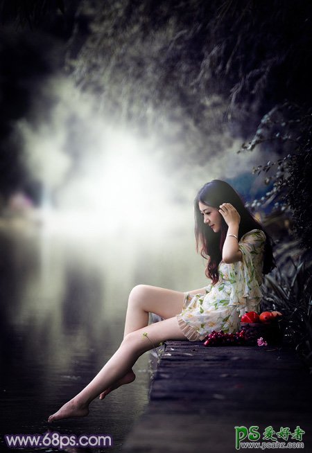 PS美女调色教程:给水边自拍的长腿女生艺术照调出唯美的中性冷色效果,中性冷色调色思路非常简单:直接降低主色饱和度得到初步中性图片;最后我们再渲染一下高光即可实现,喜欢就动手练习一下吧!