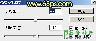 15、创建亮度/对比度调整图层,参数设置如图33,确定后创建剪切蒙版,再把蒙版填充黑色,然后用透明度较低柔边白色画笔把人物右侧受光区域涂亮一点,效果如图34。