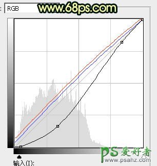 4、按Ctrl + Alt + 2 调出高光选区,按Ctrl + Shift + I 反选得到暗部选区,然后创建曲线调整图层,对RGB、红、蓝通道进行调整,参数及效果如下图。这一步把图片暗部压暗,并增加蓝红色。