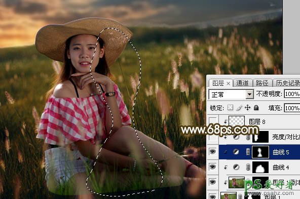 PS调色教程:给草原上自拍的未成年少女图片调出唯美的晨曦阳光色