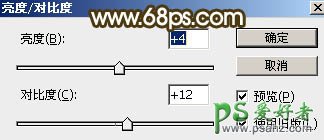 14、创建亮度/对比度调整图层,增加亮度及对比度,参数设置如图23,确定后创建剪切蒙版,再把蒙版填充黑色,然后用透明度较低柔边白色画笔把人物左侧受光区域涂亮一点,效果如图24。