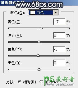17、创建可选颜色调整图层,对红色,白色进行调整,参数设置如图32,33,确定后创建剪切蒙版,效果如图34。这一步给肤色高光区域增加淡青色。