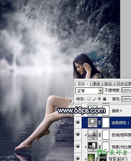 PS美女图片调色:给春天里湖边自拍的清纯少女玉腿美脚写真照调出梦幻的暗蓝色,效果图为冷色图片,调色的时候可以先降低主色饱和度,得到中性图片;最后再增加淡蓝色,调整一下高光及主色,整体再柔化处理一下即可,喜欢的朋友们好好学习一下吧! 原图 最