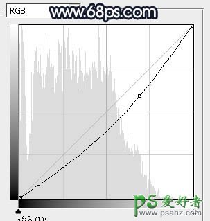 21、创建曲线调整图层,把RGB通道压暗一点,参数设置如图41,确定后把蒙版填充黑色,然后用透明度较低的柔边白色画笔把人物背光区域涂暗一点,效果如图42。