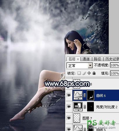 PS美女图片调色:给春天里湖边自拍的清纯少女玉腿美脚写真照调出梦幻的暗蓝色,效果图为冷色图片,调色的时候可以先降低主色饱和度,得到中性图片;最后再增加淡蓝色,调整一下高光及主色,整体再柔化处理一下即可,喜欢的朋友们好好学习一下吧! 原图 最