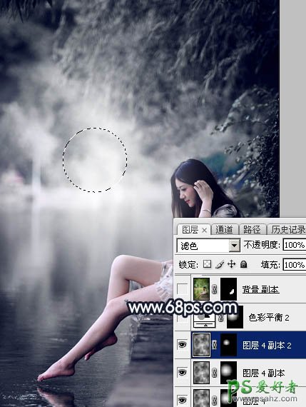 9、按Ctrl + J 把当前图层复制一层,把蒙版填充黑色,然后用透明度较低柔边白色画笔把下图选区部分再涂亮一点。