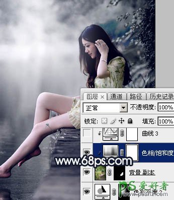 12、创建色相/饱和度调整图层,对全图进行调整,降低饱和度,参数设置如图22,确定后创建剪切蒙版,效果如图23。这一步降低衣服颜色的饱和度。