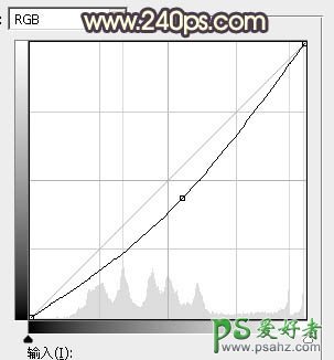 18、创建曲线调整图层,把RGB通道压暗一点,参数设置如图29,确定后创建剪切蒙版,再把蒙版填充黑色,然后用透明度较低柔边白色画笔把人物底部背光区域涂暗一点,效果如图30。